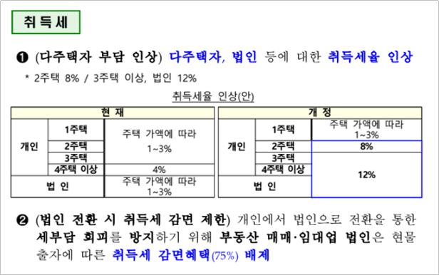 한줄 요약#1 - 집 사고 팔때 세금은 비싸고, 앞으로 더 비싸진다 (정부: 다주택자에겐 더!)