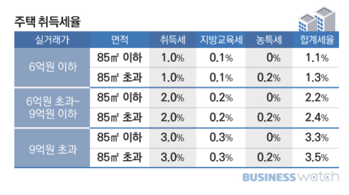 집 관련 세금 #1. 취득세 (매매가격 기준)