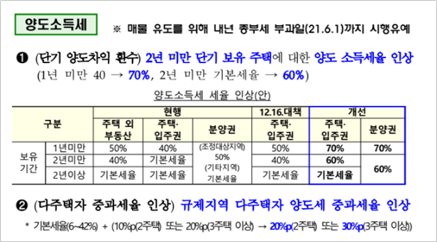 한줄 요약#2 - 집 살때의 취득세는 즉시 올리고, 팔 때의 양도세는 2021년부터 올린다 (정부: 빨리 팔아라?)
